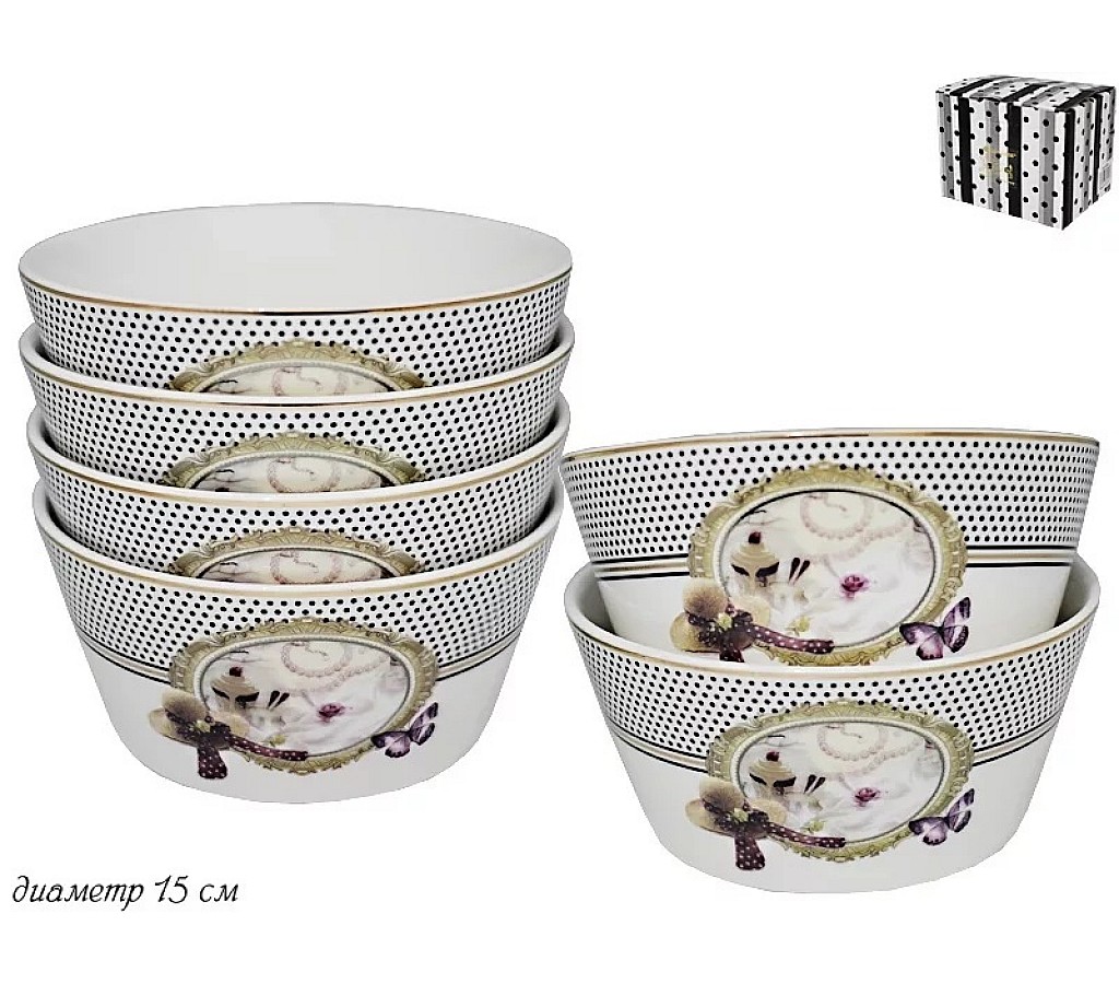 Набор салатников Paris Lenardi из 6 штук. Диаметр 15 см. Не рекомендуется использовать в микроволновой печи и мыть в посудомоечной машине, по причине возможного повреждения декоративного покрытия.
