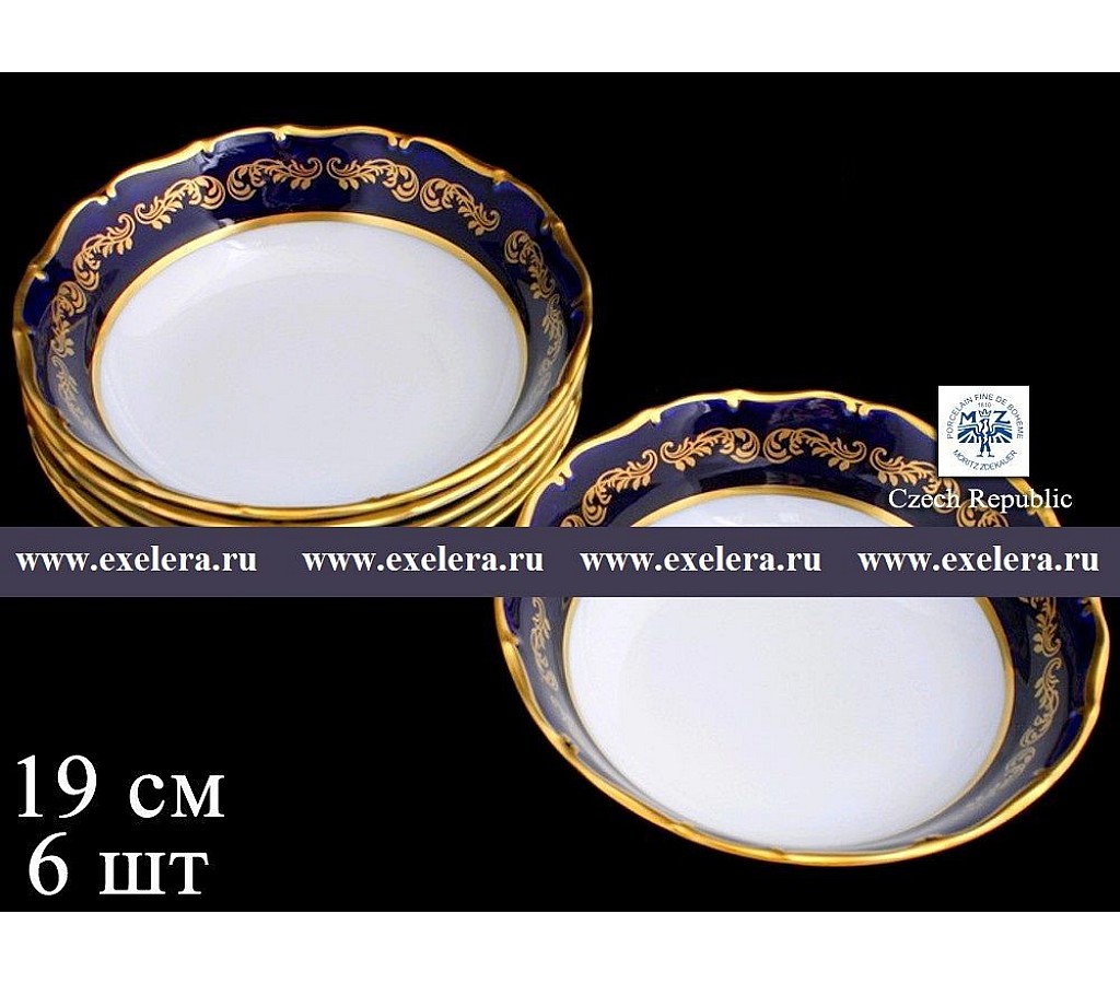 | Набор салатников 19 см Анжелика Кобальт Золотые вензеля MZ 6 шт | |