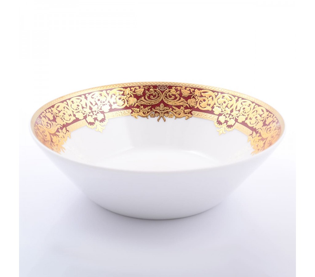 Набор 6 салатников Falkenporzellan Natalia bordeaux gold диаметр 19 см. Рекомендуется мыть руками. Не использовать в микроволновой печи. Картонная коробка.