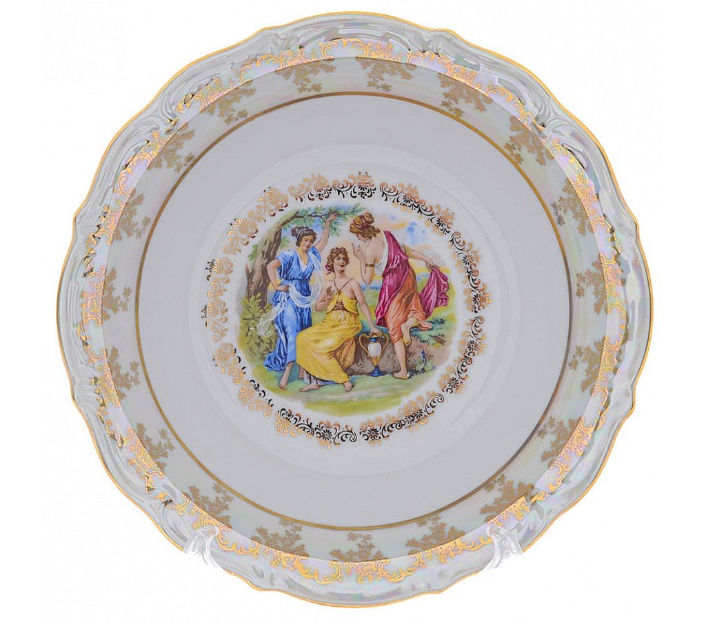 Салатник 26 см Repast Мадонна перламутр Мария-тереза. Не подходит для использования в СВЧ-печи. Рекомендуется мыть руками во избежание повреждения декоративного покрытия. Обычная картонная упаковка.