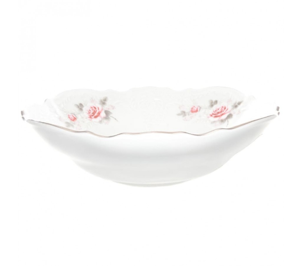 Салатник 19 см Бернадотт Серая роза платина (1 шт) Для подачи салатов, фруктовых и овощных салатов-коктейлей, а также всевозможных закусок идеально подойдет салатник из коллекции Бернадотт Серая роза Платина. Нежный декор гармонично оттеняет белизну фарфора и создает праздничное настроение каждый день.
