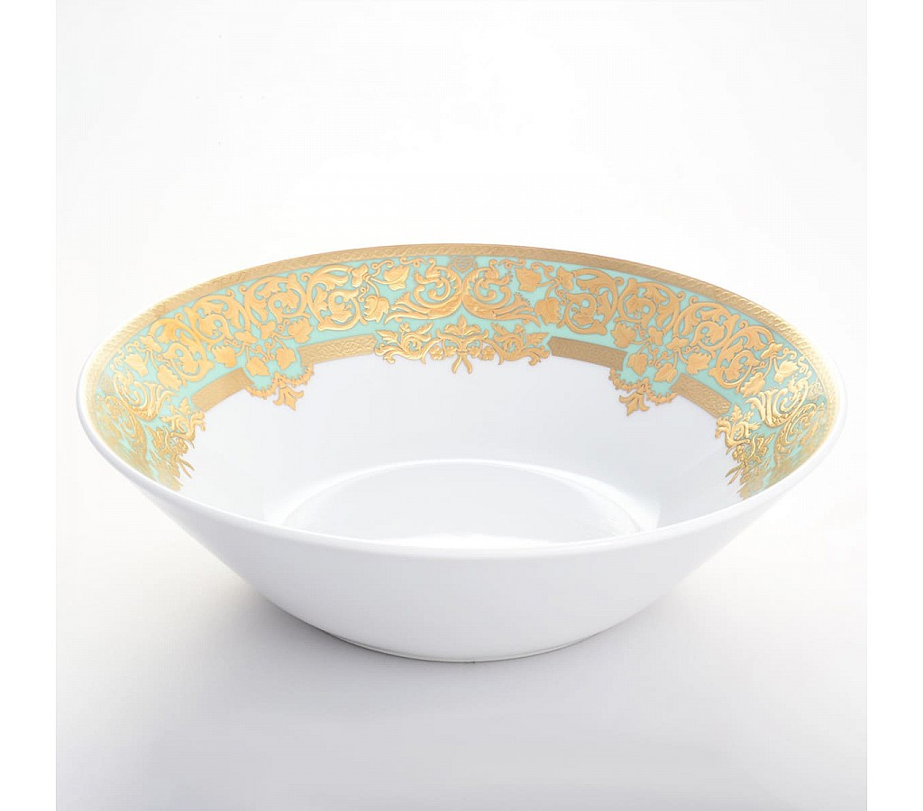 Салатник Falkenporzellan Natalia seladon gold диаметром 23 см. Рекомендуется мыть руками. Не использовать в микроволновой печи. Картонная коробка.