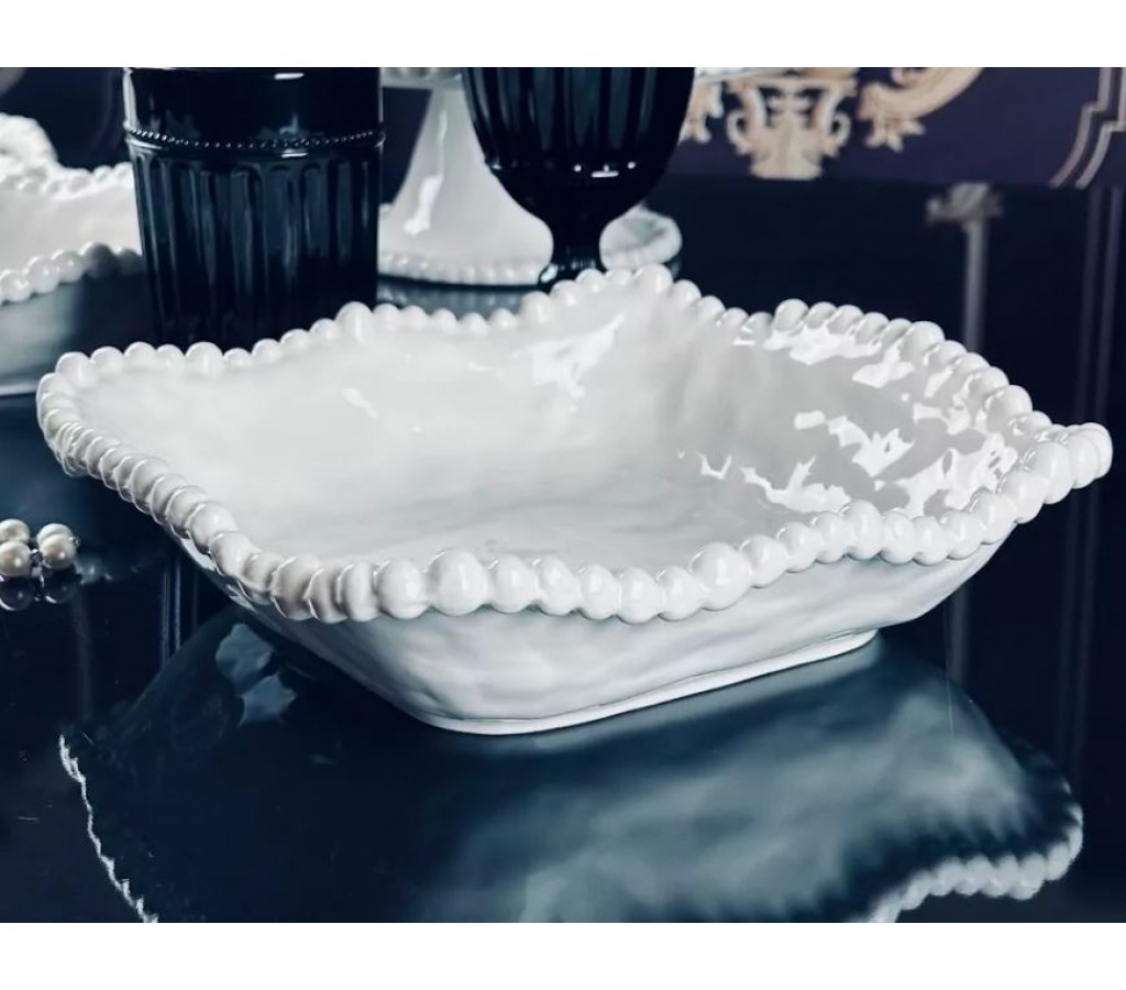 Коллекция Маринет изготовлена из высококачественного фарфора. Волнистые края с отделкой небольшими жемчужинами напоминают край морской волны, легкая текстура напоминает поверхность моря. Посуду можно мыть в ПМ и использовать в микроволновой печи, что крайне важно и очень удобно. Посуда данной коллекции идеально подходит как для домашнего, так и профессионального использования в ресторанах, кафе. На прочной глазури не остается следов от столовых приборов.Коллекция представлена различными вариантами блюд, салатников, тарелок, менажниц а также чайными наборами, которые можно приобрести по штучно. Все предметы коллекции имеют индивидуальную подарочную упаковку.