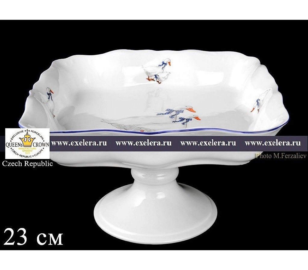 | Салатник квадратный 23 см на ножке Гуси Корона Queens Crown | |