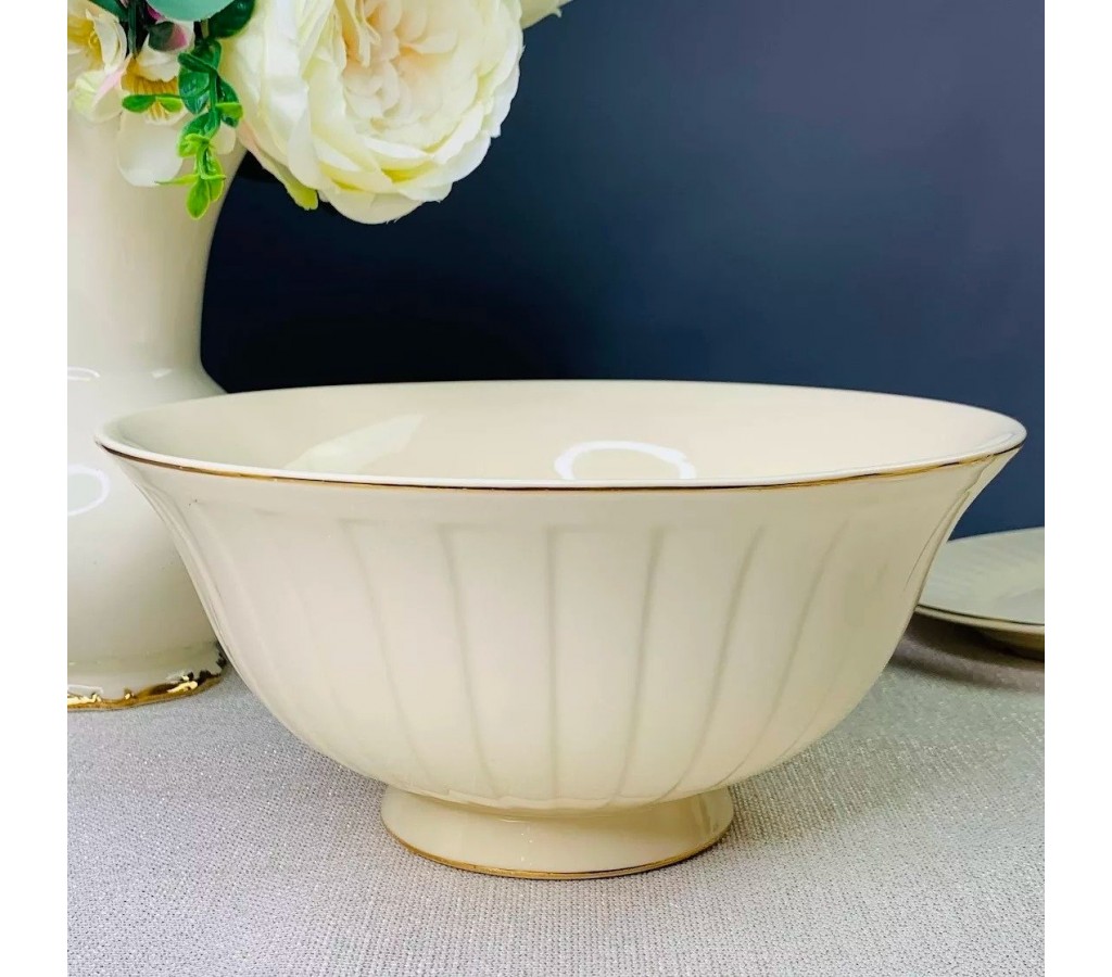 Салатник Marzipan Lenardi 23 см. Не рекомендуется использовать в микроволновой печи и мыть в посудомоечной машине, по причине возможного повреждения золотого декоративного покрытия.
