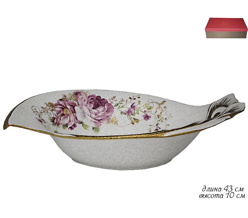 Салатник Мраморная Lenardi. Длина 43 см. Высота 10 см. Подарочная коробка.
