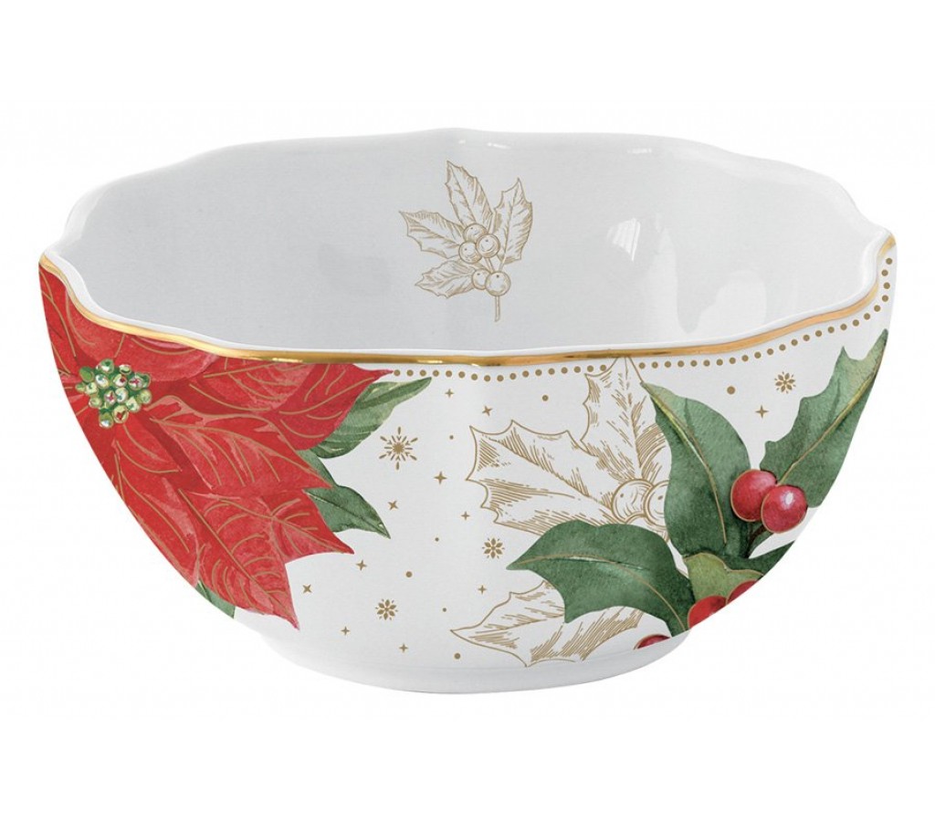 Салатник Пуансеттия и ягоды Easy Life 12 см, 0,35 л. Мыть тёплой водой с применением ЖМС. Не использовать в СВЧ и посудомоечной машине. Подарочная коробка.