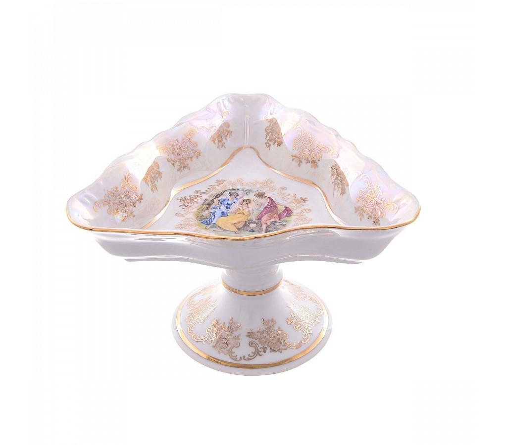 | Салатник треугольный 19 см на ножке Мадонна перламутр Корона Queens Crown | |