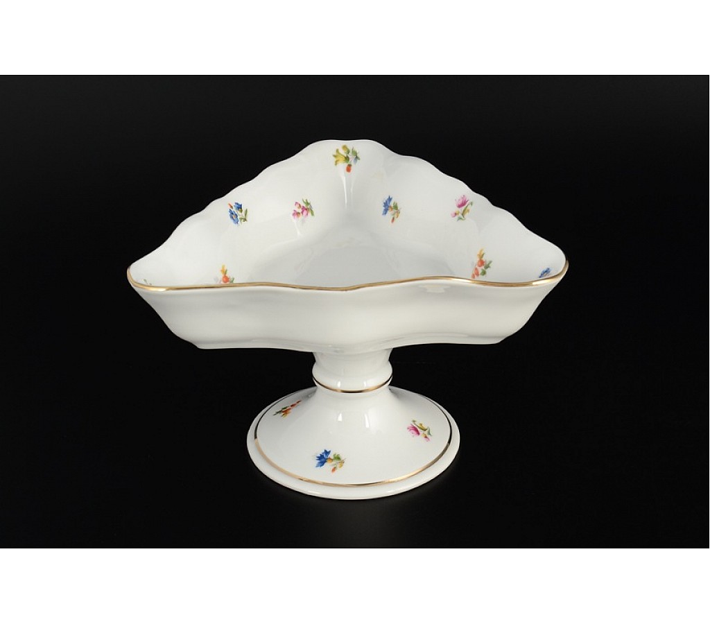 Салатник треугольный 19 см на ножке Мелкие цветы отводка золото Корона Queens Crown