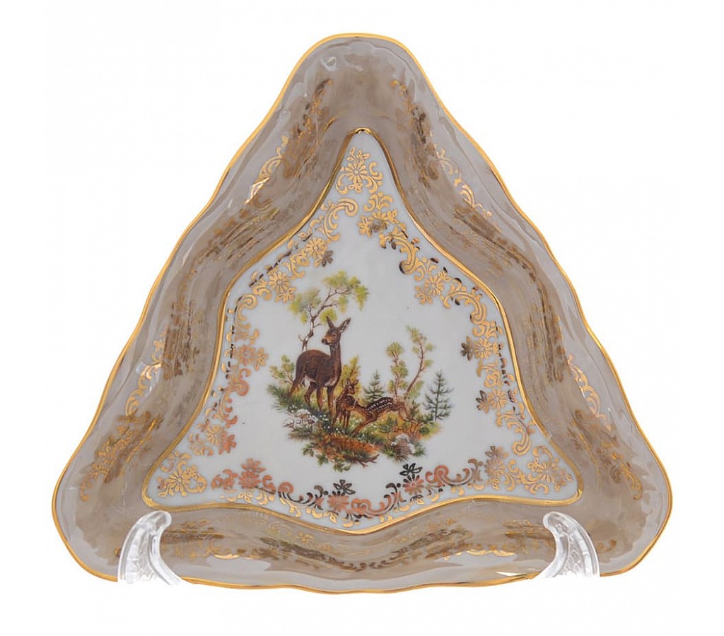 Салатник треугольный 19 см Queen's Crown Охота Бежевая. Не подходит для использования в СВЧ-печи. Рекомендуется мыть руками во избежание повреждения декоративного покрытия. Обычная картонная упаковка.