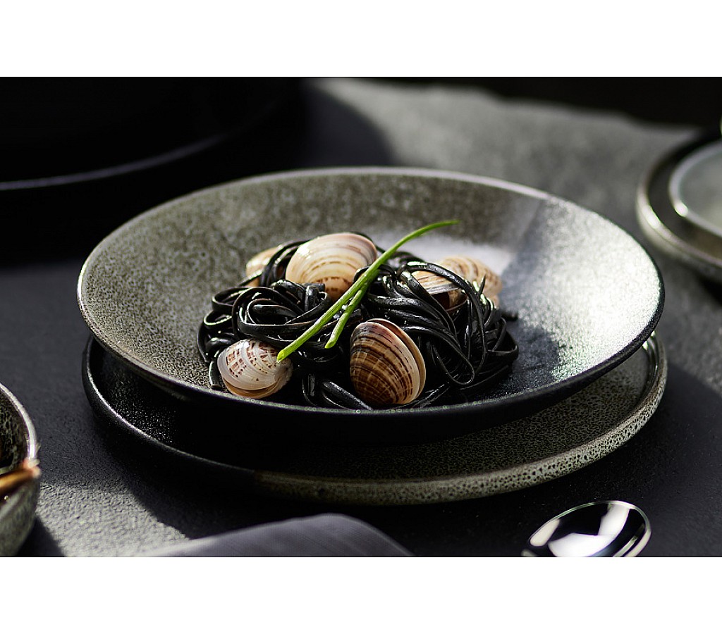 Салатник, 30х8,5 см, 3,0 л, фарфор P, черно-серый, в крапинку, Umi. Без упаковки Мыть теплой водой с применением жидких моющих средств. Можно использовать в СВЧ и мыть в посудомоечной машине.