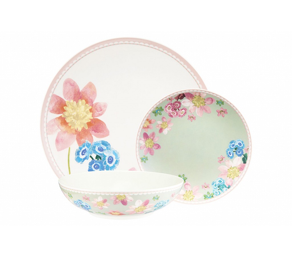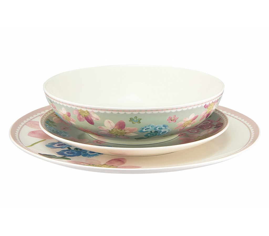 Обеденный набор Primula, шалфей, 4 персоны, 12 предметов. 4 обеденные тарелки 27 см, 4 закусочные тарелки 20 см, 4 суповые тарелки (салатника) 20 см. Мыть тёплой водой с применением жидких моющих средств. Можно использовать в СВЧ и мыть в посудомоечной машине