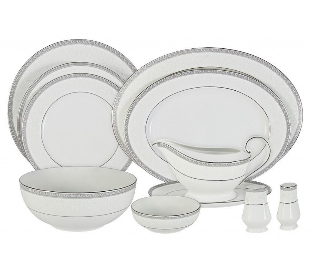 47746 Обеденный сервиз 27 предметов на 6 персон Луна 6 тарелок 27 см, 6 тарелок 23 см, 6 тарелок 21 см, 2 салатника 13 см, 1салатник 22 см, 1 блюдо 38 см, 1 блюдо 32 см, соусник, блюдо д/соусника, солонка, перечница