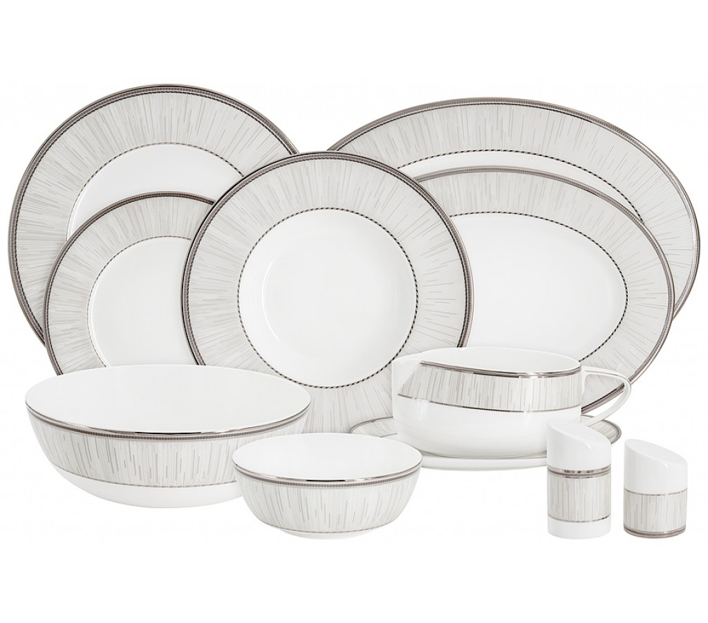Обеденный сервиз Баккара, 6 персон, 27 предметов .Рекомендуется мыть тёплой водой с применением жидких моющих средств. Не использовать в посудомоечной машине. Не использовать в СВЧ печи. Комплектация: 6 обеденных тарелок 27,5 см, 6 закусочных тарелок 21,5 см, 6 суповых тарелок 24,5 см, 1 салатник 23 см, 2 салатника 16 см, 1 блюдо 36 см, 1 блюдо 30 см, 1 соусник, 1 блюдо под соусник, 1 солонка, 1 перечница.