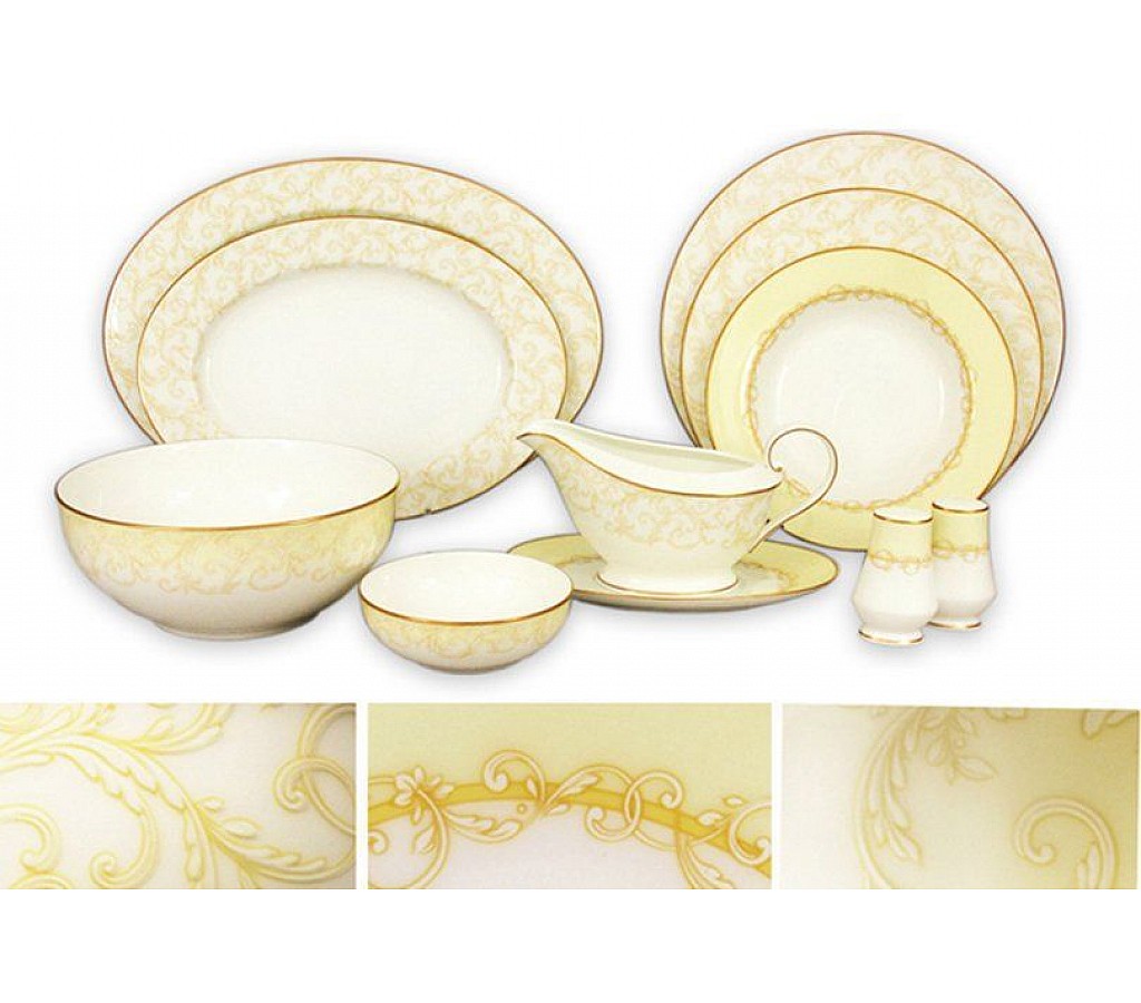 Невероятно теплый, светлый и красивый обеденный сервиз из 27 предметов Narumi «Версаль» – это просто находка для оптимистичных и жизнерадостных людей. Солнце должно светить при любой погоде, а этот набор посуды поможет создать именно такую солнечную и радостную атмосферу за столом даже в самый пасмурный день.