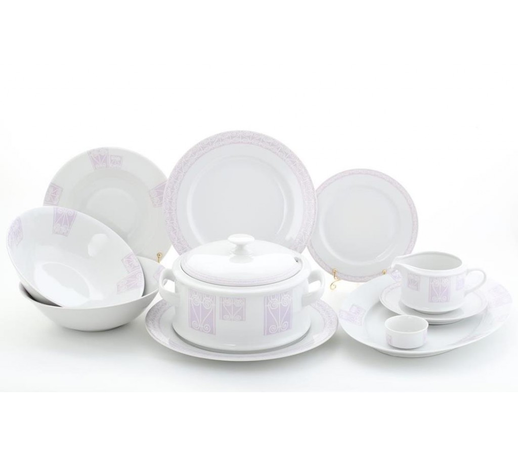 Сервиз столовый Сабина Лиловый орнамент марки Leander выполнен из прочного белоснежного фарфора, декорированного светло-сиреневым узором, который смотрится очень изящно и нежно. Сервиз Сабина Сиреневый туман отлично подойдет для ежедневных теплых обедов в кругу семья, а на торжественном мероприятии будет гармонично смотреться в любой сервировке.