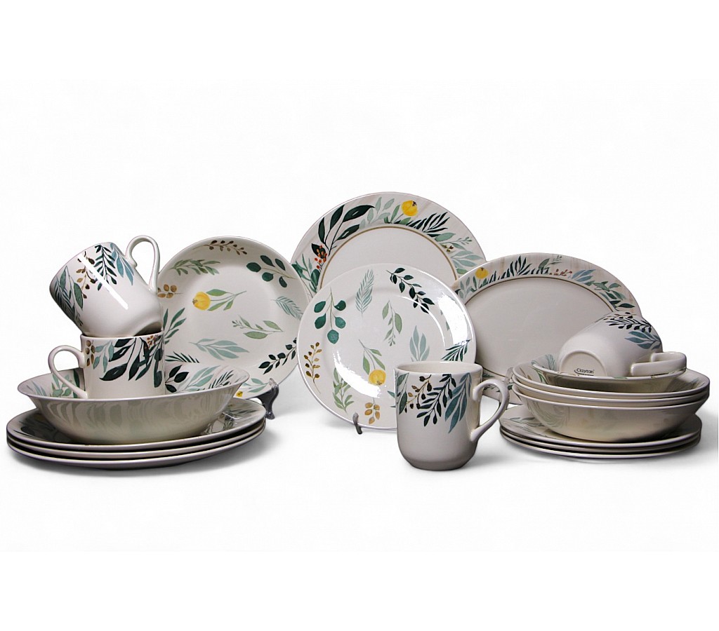 Посуда бренда Claytan обладает уникальными технологиями, такими как подглазурное декорирование, прямой перенос рисунка, тампонная печать и обжиг на трёх точках. Эти методы обеспечивают яркость, стойкость рисунков и полное глазурование изделий, включая дно. Посуда выдерживает кипяток и горячие блюда без деформации и риска вредных химических реакций. Изделия Claytan можно перемещать из холодильника прямо в микроволновую печь, обеспечивая удобство в повседневной жизни. Благодаря второму обжигу при 1080°C декоративные элементы полностью вплавляются в поверхность, сохраняя идеальный внешний вид даже при интенсивном использовании. Изделия усилены по краям, что предотвращает сколы даже при длительном использовании и обращении. Посуда с носиками и ручками, специально разработанными для минимизации повреждений, изготавливается из материала с добавлением алюминия, что значительно увеличивает прочность и долговечность. Продукты разработаны так, чтобы выдерживать частое использование в посудомоечной машине при обычных условиях мытья, поэтому посуда всегда выглядит, как новая. Посуда прочная и непористая благодаря глазури, которая покрывает основание посуды и предотвращает поглощение других материалов. Упаковка картон. Состав сервиза: тарелка десертная 21 см-4шт; тарелка суповая 20 см-4шт; тарелка обеденная 27 см-4шт; салатник 16 см-1шт; салатние 23 см-1шт; блюдо овальное 25,5 см-1шт; кружки 370 мл-4шт