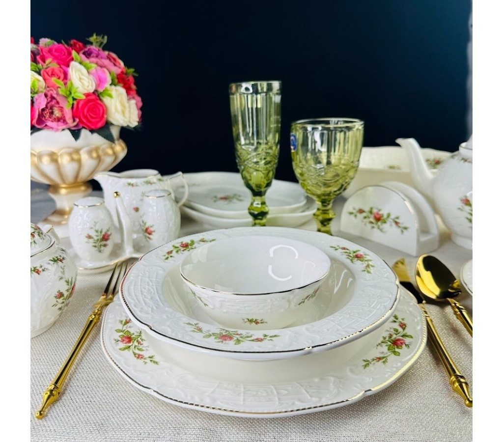 Столово-чайный сервиз Доминика Lenardi на 12 персон 88 предметов изготовлен из фарфора.Сервиз можно мыть в ПМ.