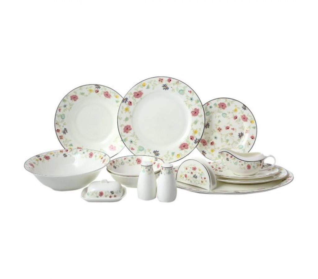 Столовый сервиз от известной фабрики Royal Classics серии Изабель выполнен их высококачественного фарфора белого цвета, декорирован россыпью нежных летних цветов и тонким золотым антом по ровному краю посуды. Сервиз Изабель прекрасно подойдет для любой сервировки, как званого праздничного застолья, так и ужина в кругу близких людей.