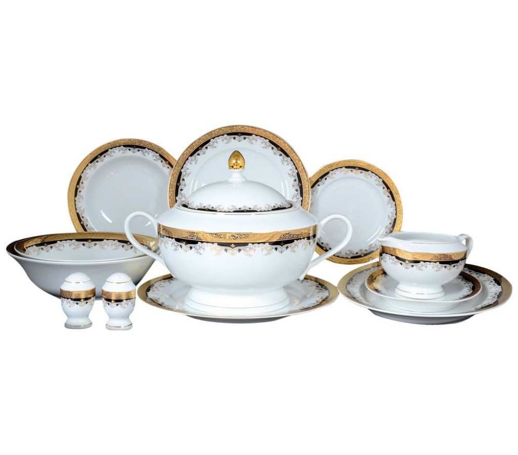 Комплектация столового сервиз Кристина Черная Лилия на 6 персон включает 28 предметов:
