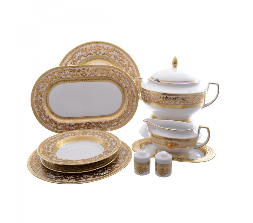 Столовый сервиз Alena 3D Crem Gold Constanza Falkenporzellan на 6 персон 27 предметов