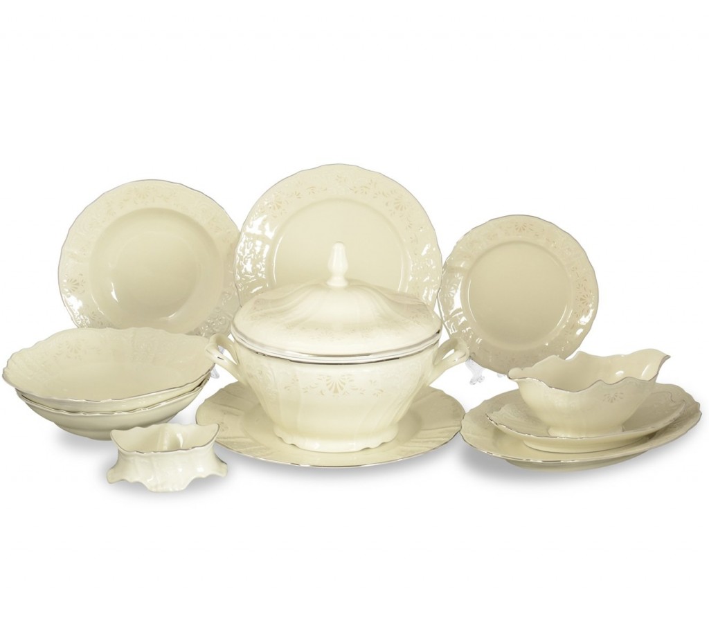 Кремовое совершенство, изящные линии вдохновляют на романтический мысли. Фарфоровый обеденный сервиз «Бернадотт Платиновый узор BE-IVORY» воплотил в себе все самые прекрасные традиции чешского производства посуды. Недаром Чехию воспевали художники и поэты. Здесь производят самые утонченные, изысканные сервизы, которые по достоинству завоевывают название произведения искусства.