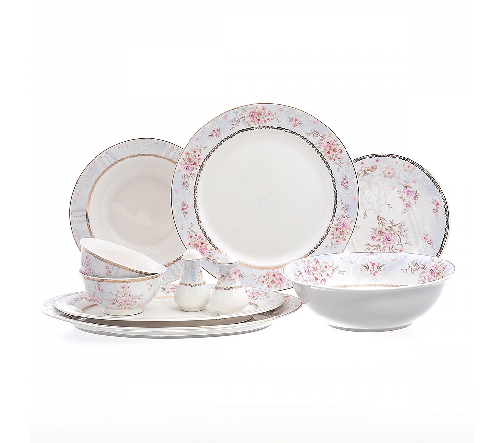 Столовый сервиз Нежные цветы Royal Classics 25 предметов Новинки! Оригинальный столовый сервиз, включающий 25 предметов, среди которых: глубокие и мелкие тарелки разного диаметра, салатники и блюда, набор для специй.В нём отчётливо присутствуют снежная белизна, сливки и слоновая кость.,а цветочная россыпь из нежно-розовых полевых соцветий еще больше подчеркивает эту первозданную белизну. Еще больше вариантов для праздничной и ежедневной сервировки вашего стола.