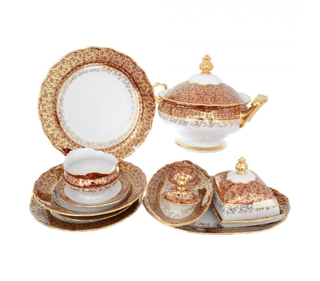 Столовый сервиз Queen's Crown Aristokrat Лист красный на 6 персон 27 предметов