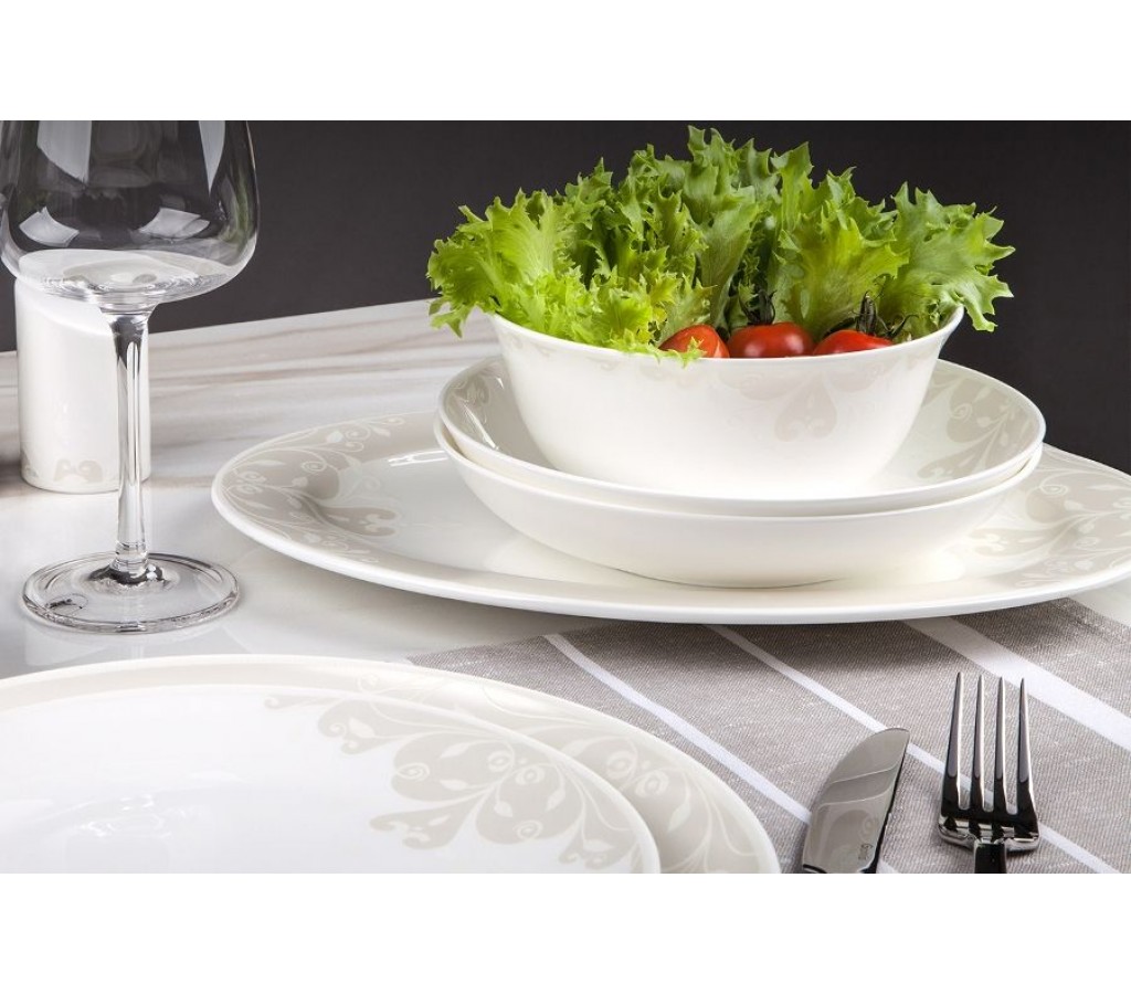 Блюдо овальное 31 см 1 шт., Салатник 15 см 6 шт., Тарелка плоская 25 см 6 шт., Тарелка плоская 20 см 6 шт., Тарелка суповая 19,5 см, 500 мл 6 шт., Солонка 1 шт., Перечница 1 шт.