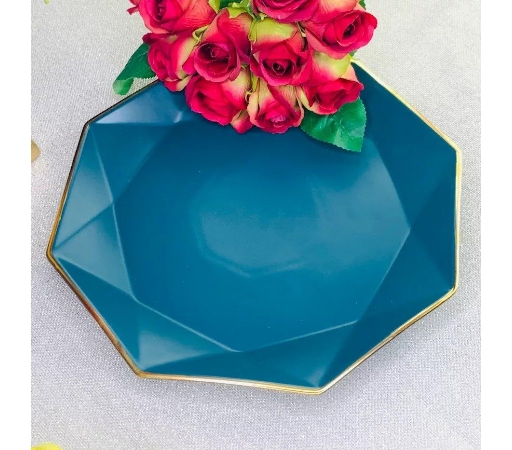 Набор из 6 обеденных тарелок Lenardi Грани бирюзово-зеленого цвета упакован в подарочную коробку.