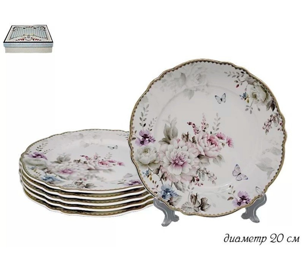 Набор 6 тарелок Lenardi Хризантемы 20 см. Не рекомендуется мыть в посудомоечной машине и использовать в микроволновой печи. Подарочная коробка.