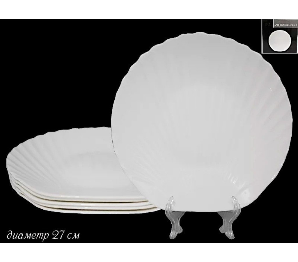 Набор 6 тарелок Lenardi Ракушка 27 см. Опаловое стекло. Можно использовать в посудомоечной машине и в микроволновой печи. Подарочная коробка.