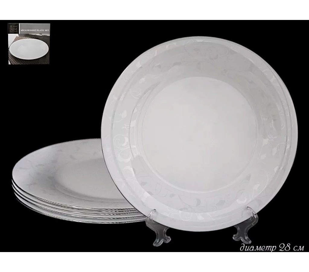 Набор из 6 тарелок Серебряный шелк Ленарди диаметром 28см. Опаловое стекло. Можно использовать в посудомоечной машине и в микроволновой печи. Подарочная коробка.