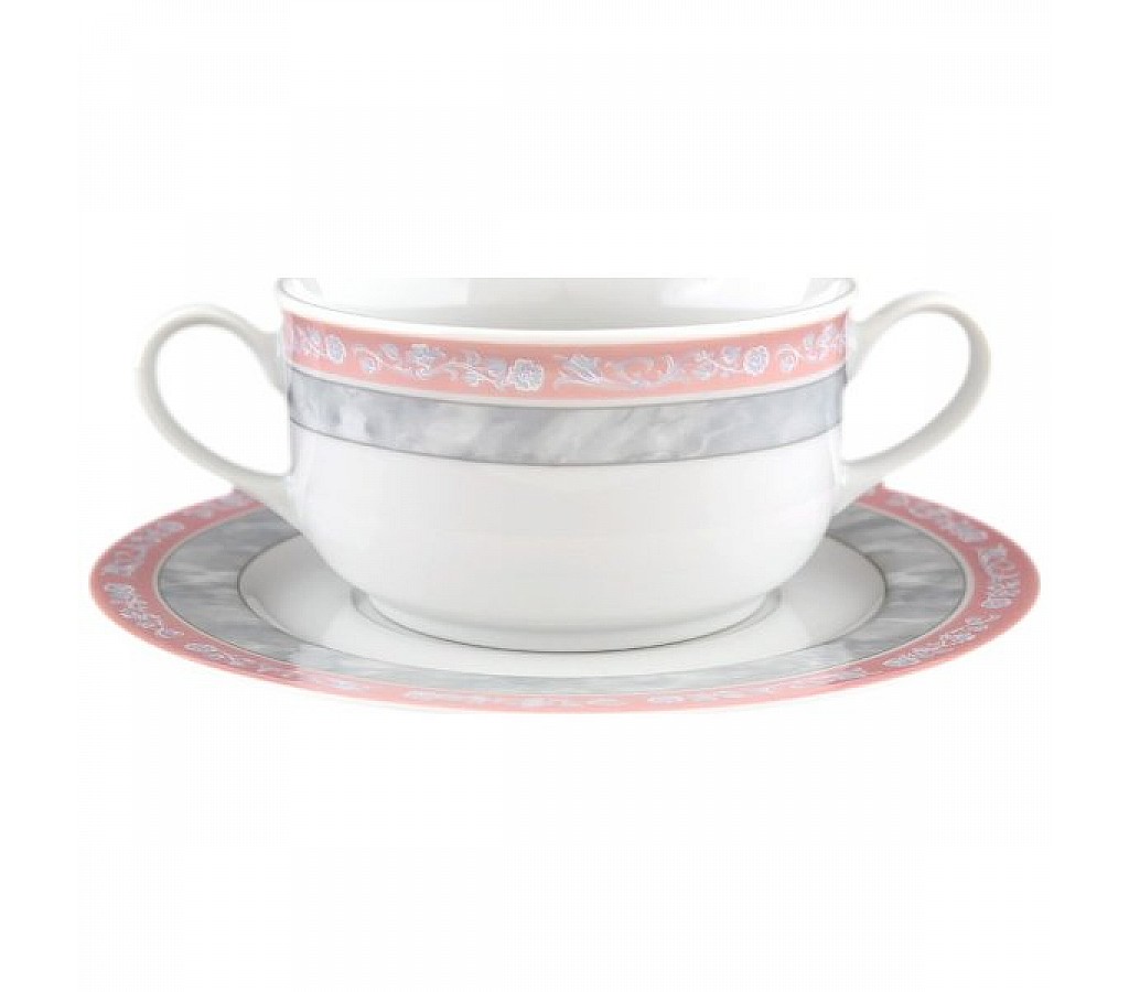 | Набор бульонных пар Яна Серый мрамор с розовым кантом Thun 350 мл | |