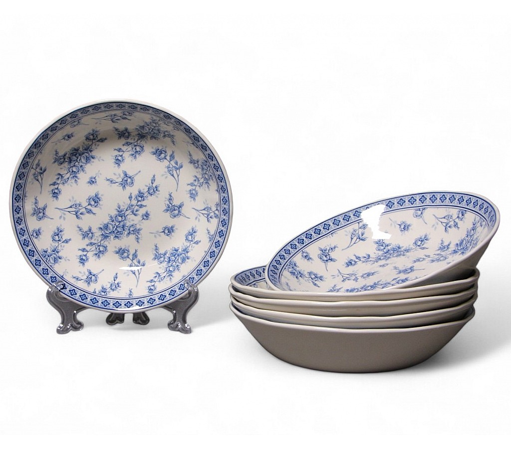 Набор глубоких тарелок 20 см на 6 персон Rose Cluster Blue Claytan