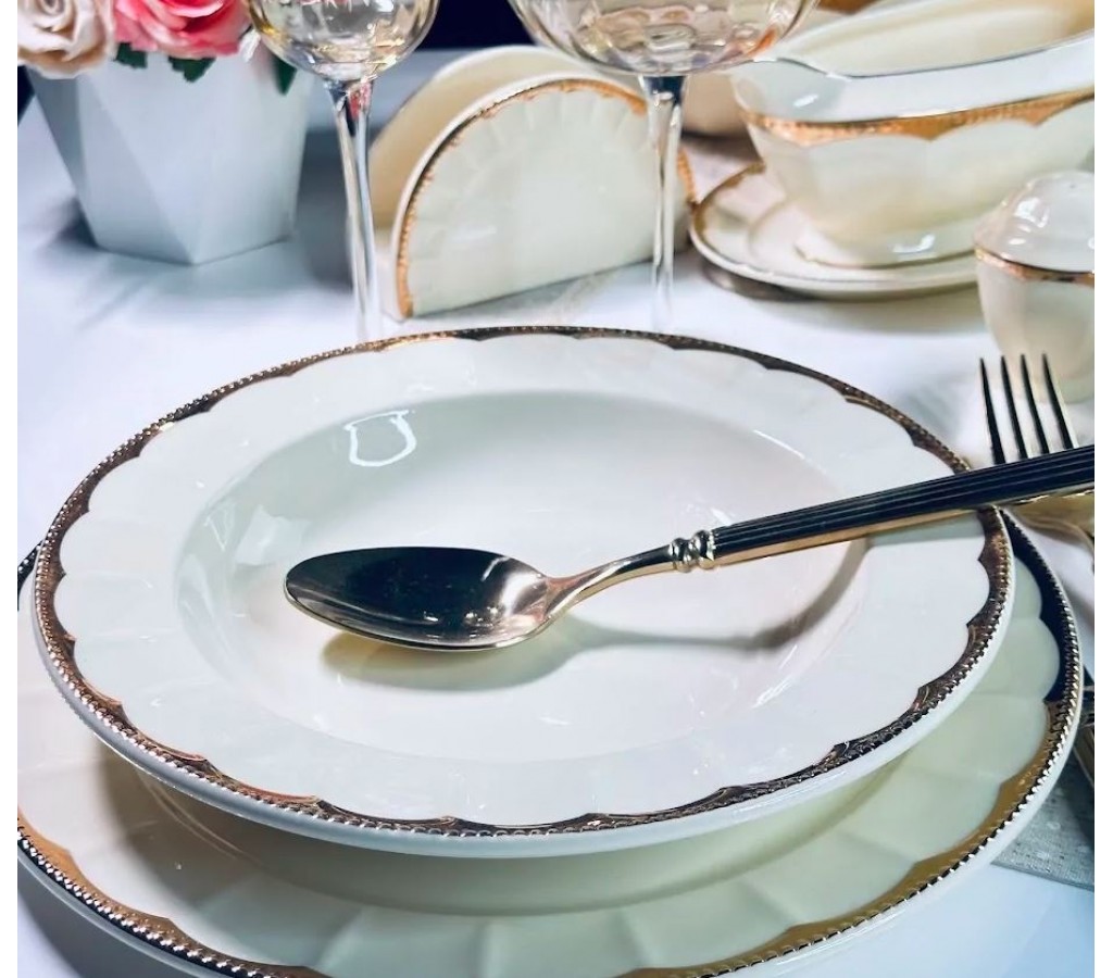Коллекция фарфоровой посуды Империал золото невероятно торжественна и утончена. Отделка золотом создает вневременное и романтическое очарование, которое нравится людям всех возрастов. Посуду можно использовать для повседневного ужина, особых случаев или в качестве декоративного предмета. Сервизы, наборы посуды и отдельные предметы сервировки упакованы в подарочные коробки. Рекомендуется мыть вручную.