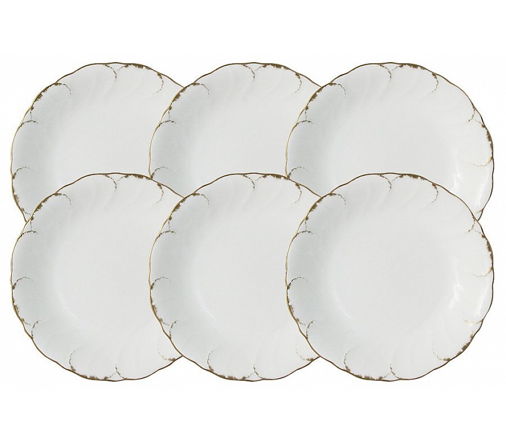 Набор из 6 суповых тарелок Белый с золотом 19см Обычная упаковка.