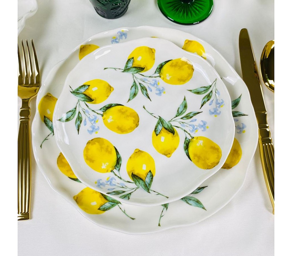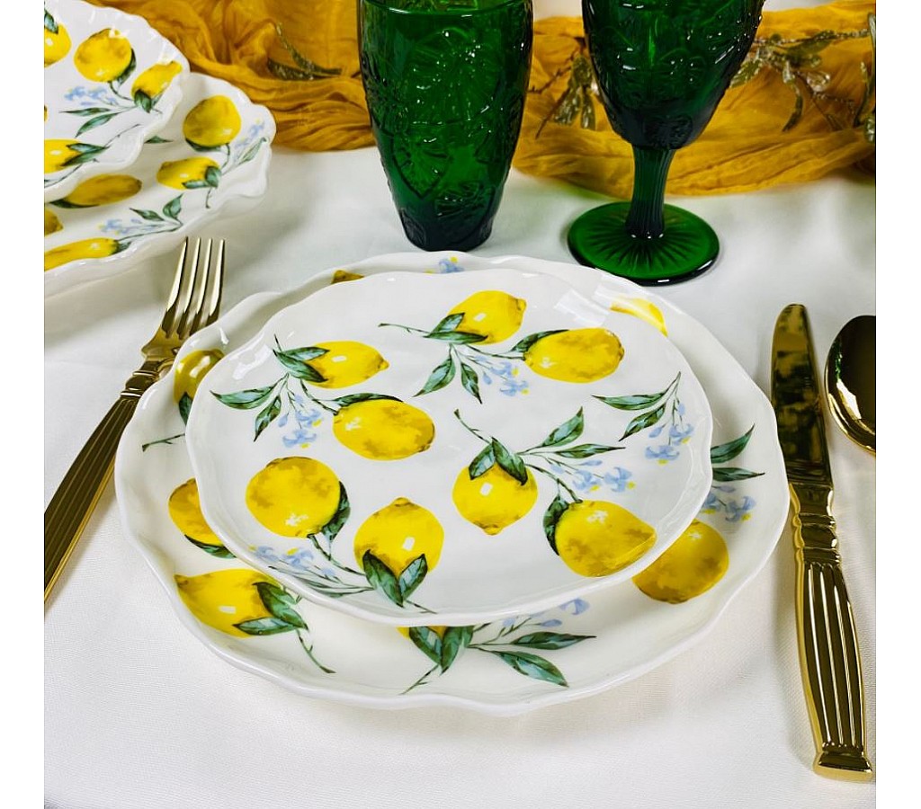Коллекция «ЛИМОНЫ» порадует вас яркими деталями в дизайне, в виде изображений сочного лимона, которые придают посуде особый шарм и неповторимый вид. В коллекции "ЛИМОНЫ" представлен широкий выбор изделий: тарелки различных размеров, чайный и кофейный наборы, чайные сервиз, кружки, салатницы и многое другое. Вы сможете создать полноценный сервиз, который станет ярким акцентом на вашем столе и порадует не только вас, но и ваших гостей.