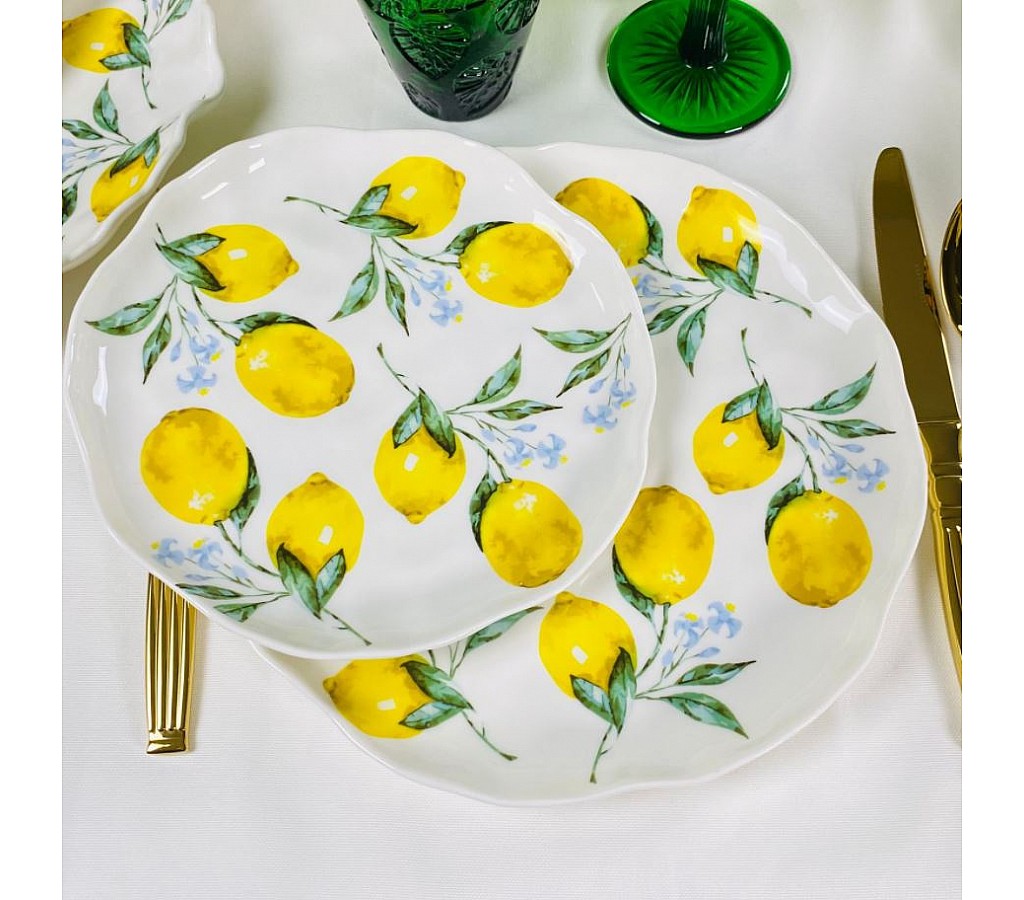 Коллекция «ЛИМОНЫ» порадует вас яркими деталями в дизайне, в виде изображений сочного лимона, которые придают посуде особый шарм и неповторимый вид. В коллекции "ЛИМОНЫ" представлен широкий выбор изделий: тарелки различных размеров, чайный и кофейный наборы, чайные сервиз, кружки, салатницы и многое другое. Вы сможете создать полноценный сервиз, который станет ярким акцентом на вашем столе и порадует не только вас, но и ваших гостей.