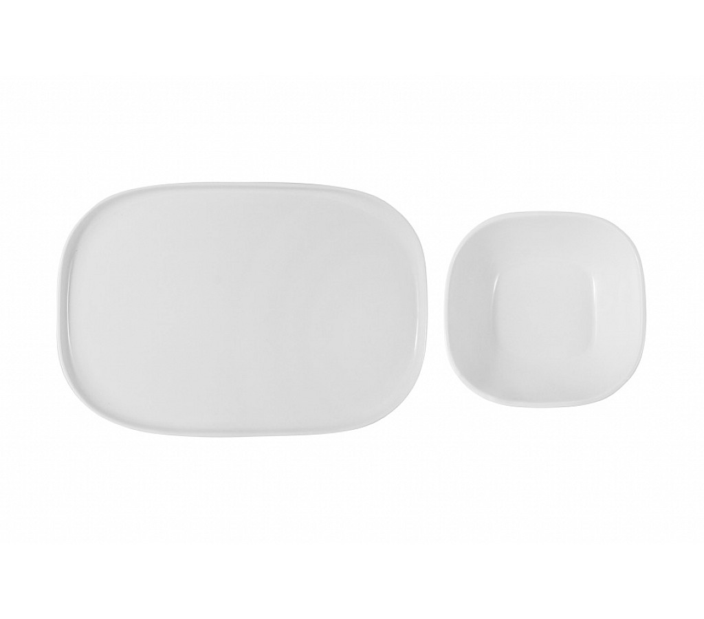 Набор посуды для сервировки из коллекции Форма белого цвета состоит из: тарелка, 2 салатника. Размер: прямоугольная тарелка - блюдо 30х16см, прямоугольный салатник большой 20см, квадратный салатник маленький 10 см Подходит для подачи как европейских, так и азиацких блюд. Материал изготовления: фарфор с глянцевым покрытием, которое придает изделиям дополнительный блеск.