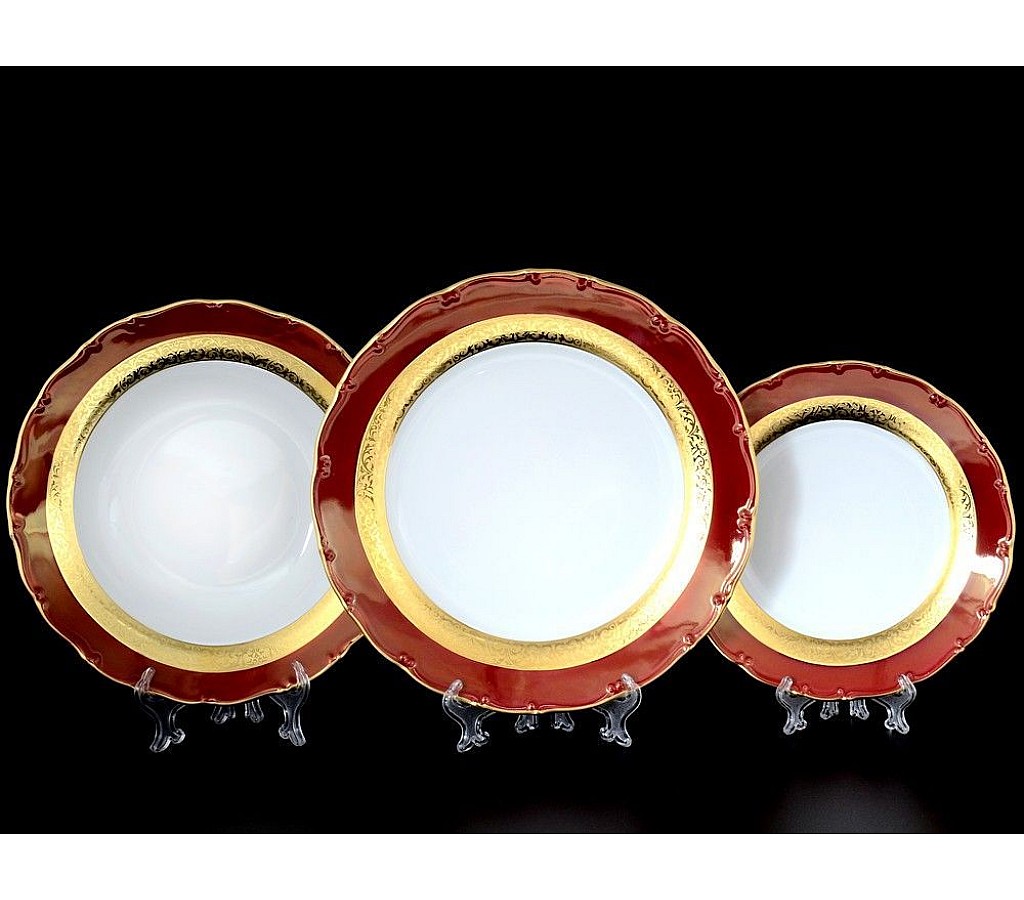 | Набор тарелок Магнолия Золотая полоса Рубин MZ на 6 персон 18 шт | |