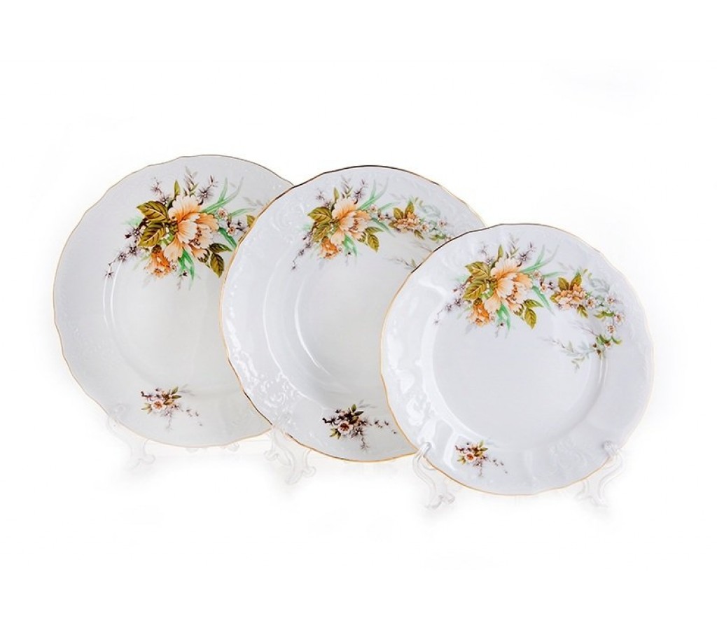 Набор тарелок Бернадотт Зеленый цветок на 6 персон 18 шт