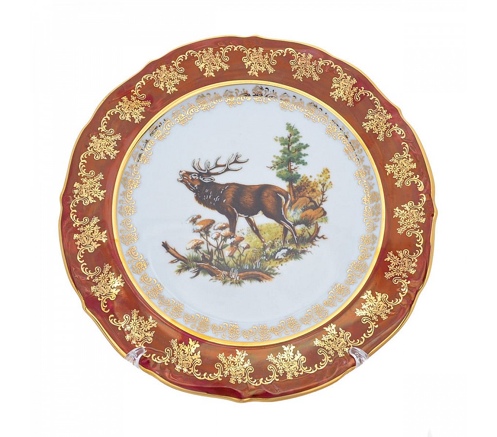 Набор тарелок Repast Охота красная Мария-тереза R-L 27 см. Не подходит для использования в СВЧ-печи. Рекомендуется мыть руками во избежание повреждения декоративного покрытия. Обычная картонная упаковка.