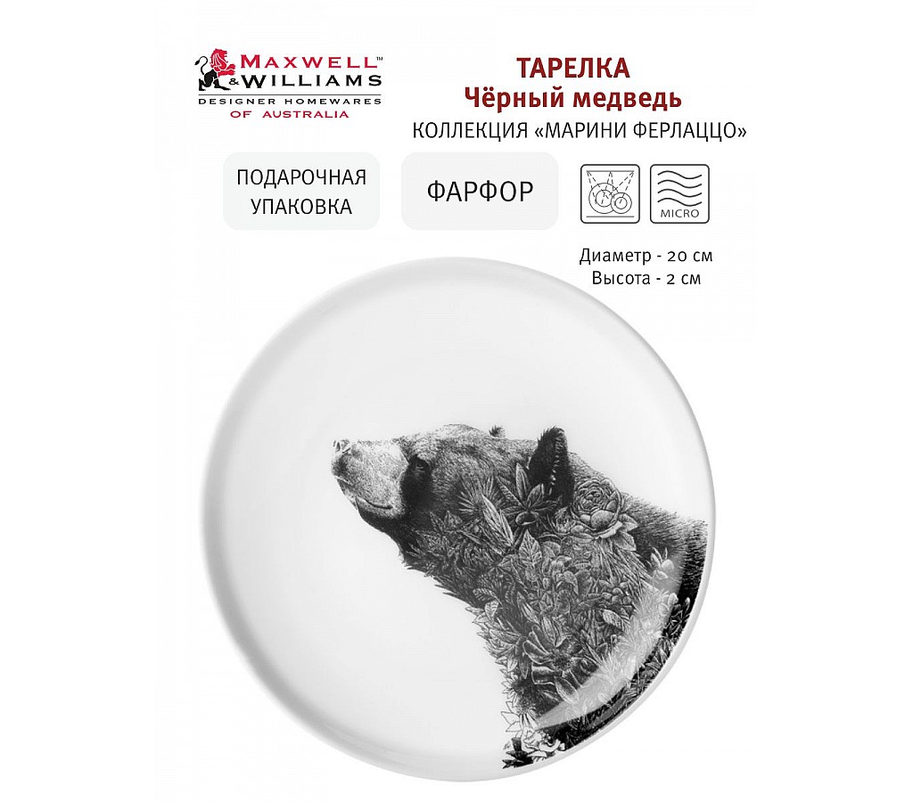 Тарелка десертная Чёрный медведь 20 см. Подарочная упаковка. Мыть теплой водой с применением жидких моющих средств. Можно использовать в СВЧ и посудомоечной машине.