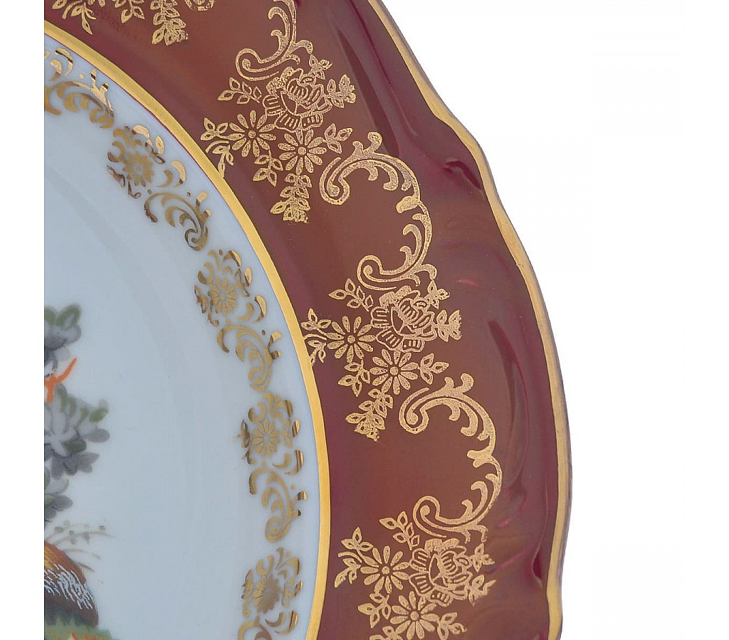 Тарелка глубокая Repast Охота красная Мария-тереза R-L 23 см. Не подходит для использования в СВЧ-печи. Рекомендуется мыть руками во избежание повреждения декоративного покрытия. Обычная картонная упаковка.