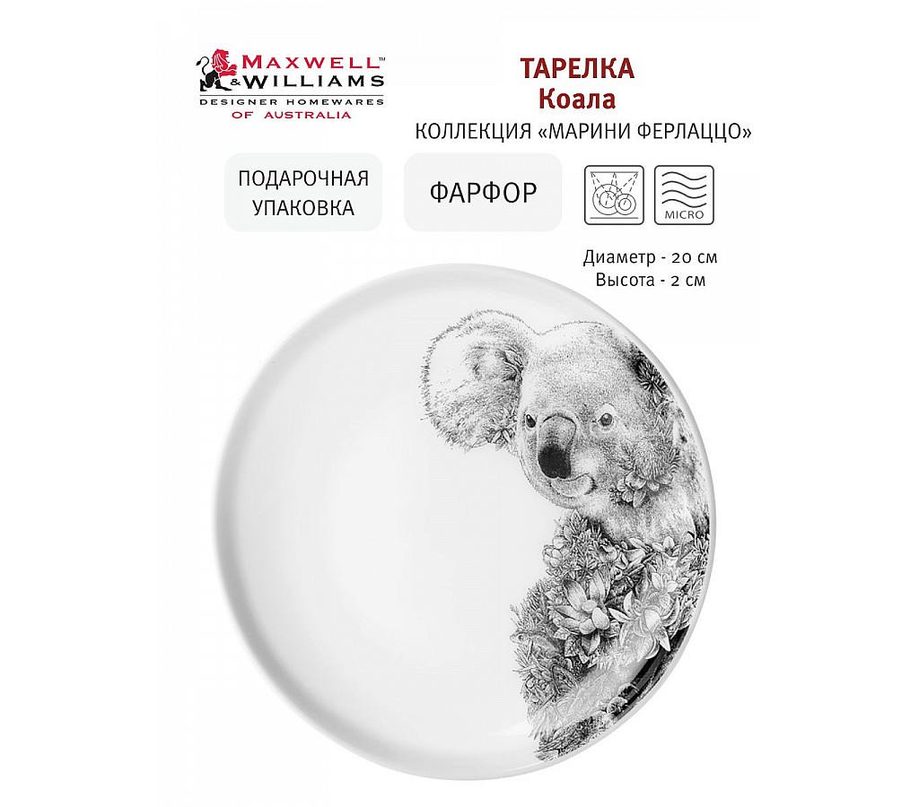 Тарелка Коала 20 см. Подарочная упаковка. Мыть теплой водой с применением жидких моющих средств. Можно использовать в СВЧ и посудомоечной машине.