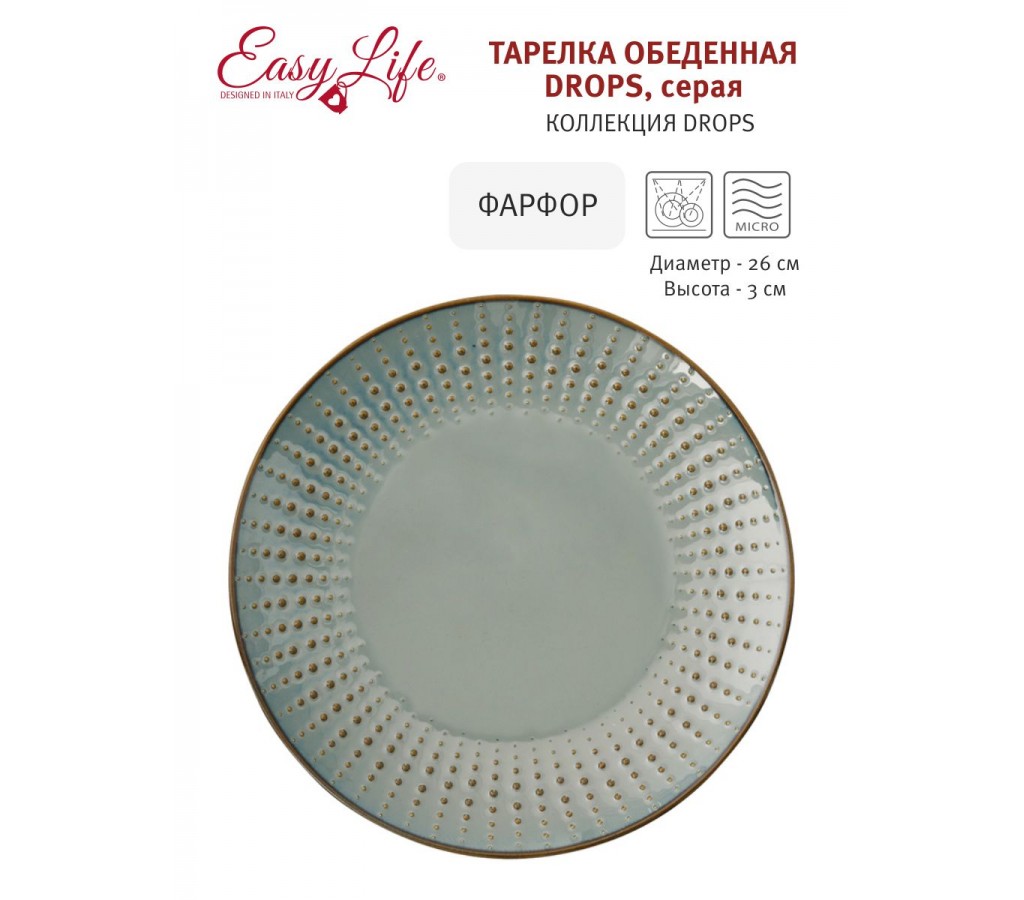 | Тарелка обеденная Drops серая Easy Life 26 см | |