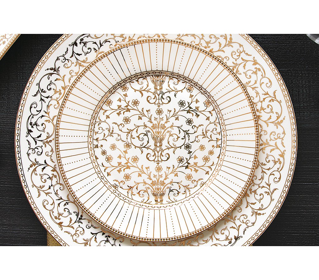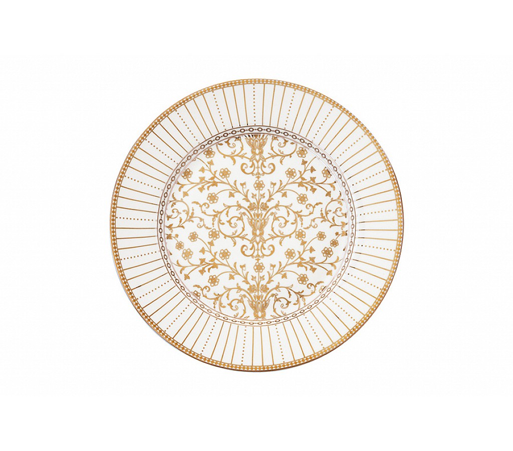 Тарелка закусочная, 19,5 см, фарфор P, белая, с золотистым орнаментом, Golden. Без упаковки Мыть теплой водой с применением мягких моющих средств. Не использовать в СВЧ и в посудомоечной машине.