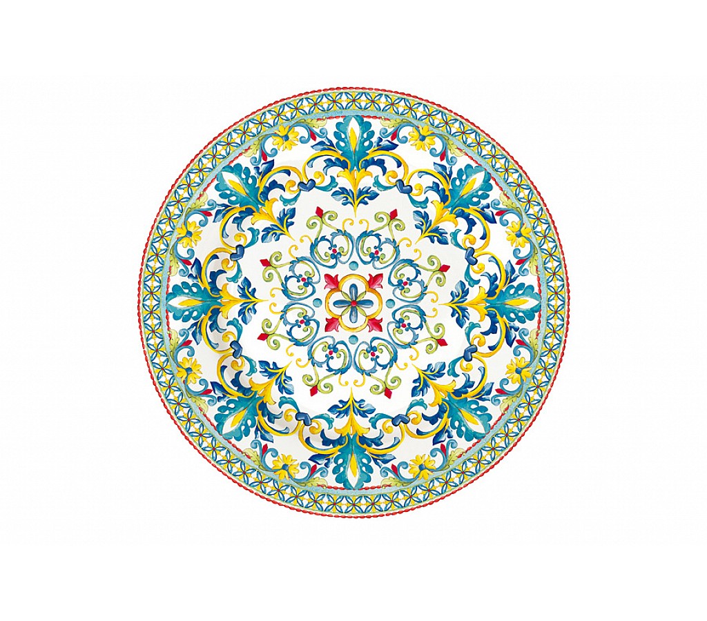 Тарелка закусочная диаметром 19 см от итальянского производителя посуды Easy Life R2S (Изи Лайф) изготовлена из высококачественного белоснежного фарфора. Материал экологически чист и безопасен для здоровья, поскольку в процессе производства не используются вредные примеси. Декор выполнен в виде разноцветного средиземноморского орнамента.