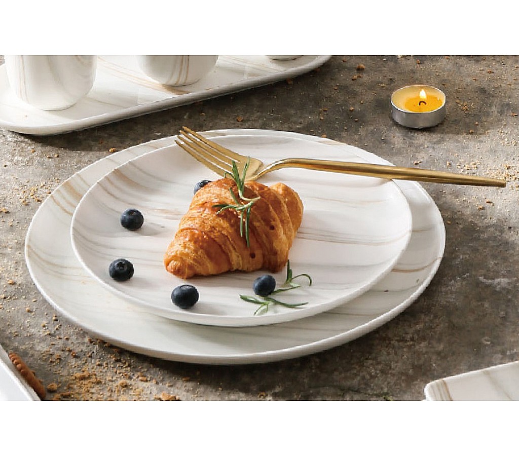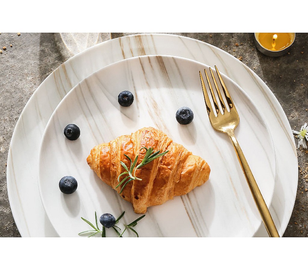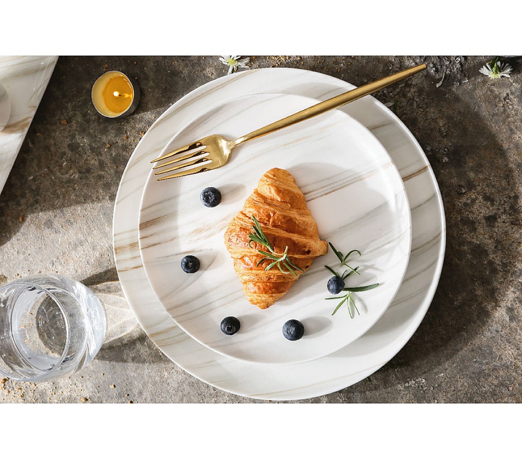 Тарелка закусочная The Royal Marble, 21см. Мыть тёплой водой с применением ЖМС. Можно использовать в СВЧ и мыть в посудомоечной машине